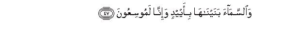 44The word must' (pl. musi'un) may mean the one who possesses power and means, and also the one who can extend and expand something. According to the first meaning, the verse would mean: "We have built this heaven by Our own might and not with somebody else's help, and its erection was in no way beyond Us. Then how can you ever conceive that We shall not be able to recreate it ?" According to the second meaning, it would mean: "This huge universe that We have created, is not a finished work, but We are expanding it continuously, and new and ever new manifestations of Our creation are appearing in it every moment. How do you then think that such a marvelous Creator would not be able to repeat His creation.