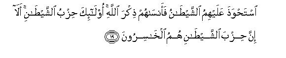 [14-21] Have you not seen those who have taken as friends a people who are under Allah's wrath?31 They are neither yours nor theirs,32 and they swear to a falsehood knowingly.33 Allah has prepared a severe torment for them. Evil are the deeds they are doing! They have made their oaths a covering under which they debar others from the Way of Allah.34 For this they shall have a disgraceful torment. Neither shall their riches avail them anything to protect them from Allah nor their children. They are the fellows of Hell in which they shall live for ever. The Day Allah raises them up all, they shall swear to Him as they swear to you,35 thinking that their oaths will avail them something. Know it well that they are utter liars. Satan has overpowered them and has caused them to forget God's remembrance. They are of Satan's party. Know it well that those of Satan's party indeed are the real losers. Surely the most abject of the creatures are those who resist Allah and His Messenger. Allah has written down: "I and My Messengers shall most certainly prevail."36 Allah is All-Powerful and All-Mighty.