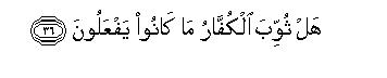 15There is a subtle satire in this sentence. In the world, the disbelievers used to persecute the believers, thinking it was an act of virtue. In the Hereafter, the believers will be enjoying life in Paradise, and watching the disbelievers being punished in Hell, will say to themselves what a reward they have earned for their acts of virtue!
