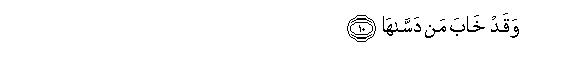 [1-10] By the sun and his brightness,1 and by the moon when she follows him, and by the day when it makes (the sun) conspicuous and by the night when it covers up (the sun),2 and by the heaven and Him Who established it,3 and by the earth and Him Who spread it, and by the human self and Him Who balanced it,4 then inspired it with its wickedness and its piety.5 Truly successful is he who purified his self and a failure he who suppressed it.6