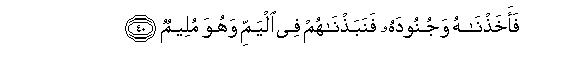 [38-40] (And there is a sign for you) in the story of Moses. When We sent him to Pharaoh with a clear authority,36 he showed arrogance on account of his might, and said, "He is a sorcerer or a madman."37 Consequently, We seized him and his hosts and cast them into the sea, aid he became blameworthy.38