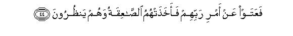 41Different words have been used for this torment at different places in the Qur'an. Somewhere it has been called rajfah (a frightful and shocking calamity), somewhere saihah (a crashing and thundering disaster), somewhere taghiyah (a most severe affliction) and here it has been described as sa'iqah (a calamity that strikes like a thunderbolt). Probably this torment had occurred as an earthquake which was also accompanied by a terrible noise.
